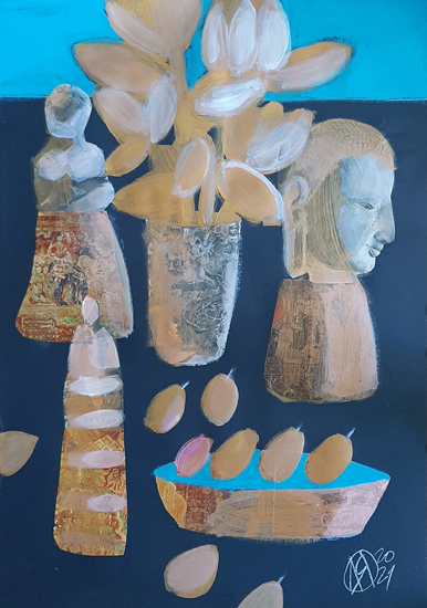 Cиняя бумага, коллаж, акрил 100х70см