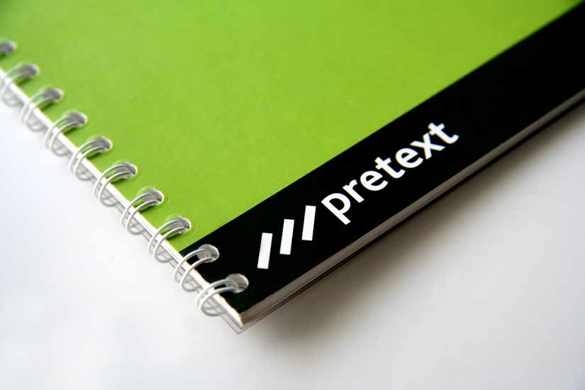 В проект входила задача разработать название и фирменный стиль издательства профессиональной деловой литературы. Найденное слово "Претекст" универсально, существует как в английском, так и во французском языке. Оно выражает концепцию издательства – современная деловая книга является не изложением инструкций, а живым вопросом.