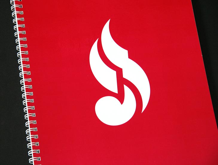 Немного от линии грифа, чуть-чуть от графики нотной записи – мы назвали этот знак «ноткой». В рамках фирменного стиля разработаны также афиши, музыкальные программы и приглашения.