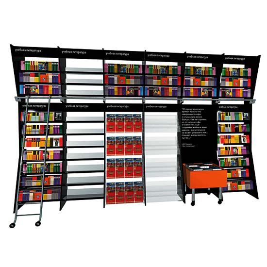 В интерьере книжных магазинов много стандартных функциональных элементов (необходимых, но монотонных и безликих), поэтому появление оригинальных элементов – это необходимая уникальность книжных магазинов “Букбери”